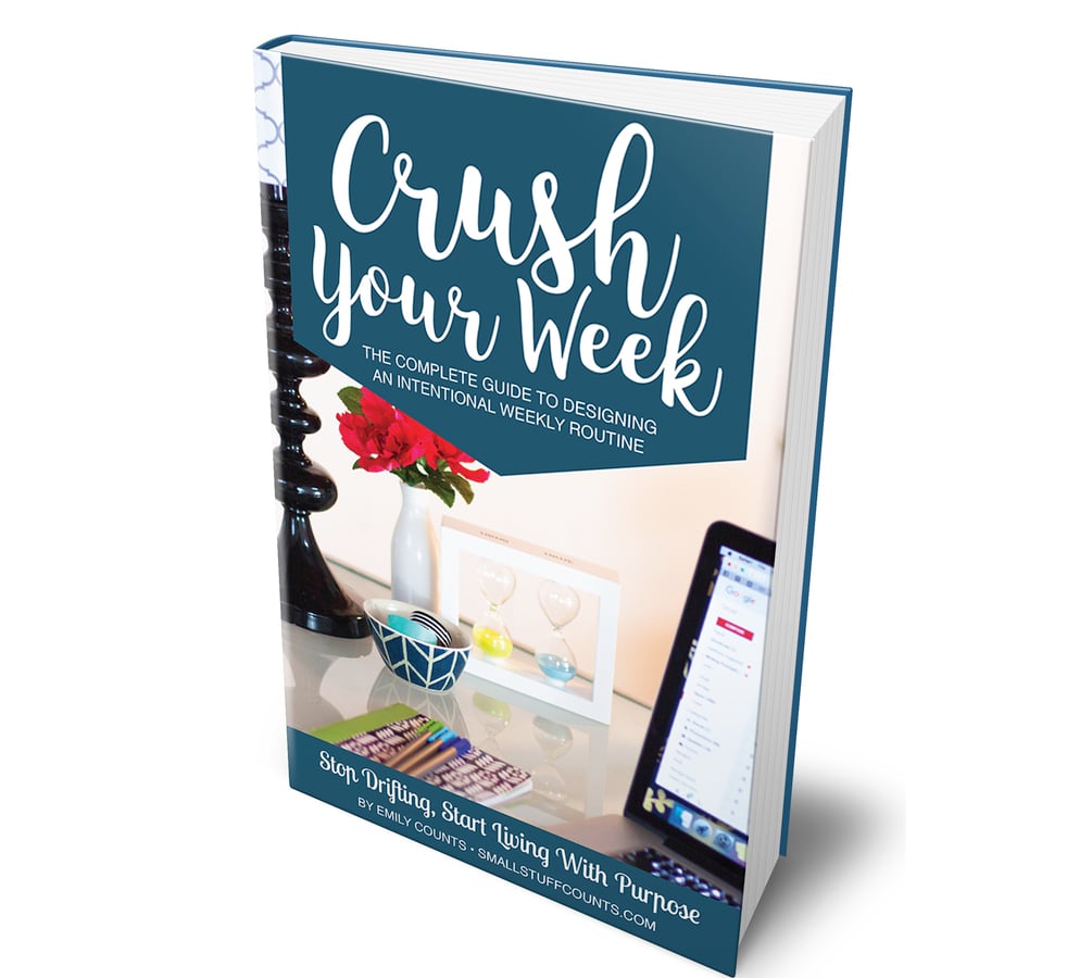 Crush Your Week: The Complete Guide To Designing An Intentional Weekly Routine is a systemic approach to designing your weekly routine. The actionable content and helpful worksheets will guide you through the entire step-by-step process. The result? A weekly routine personalized to your unique life that sets aside time for all of your responsibilities while also carving out space to work toward you biggest goals.